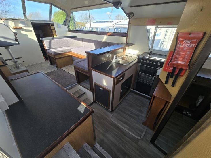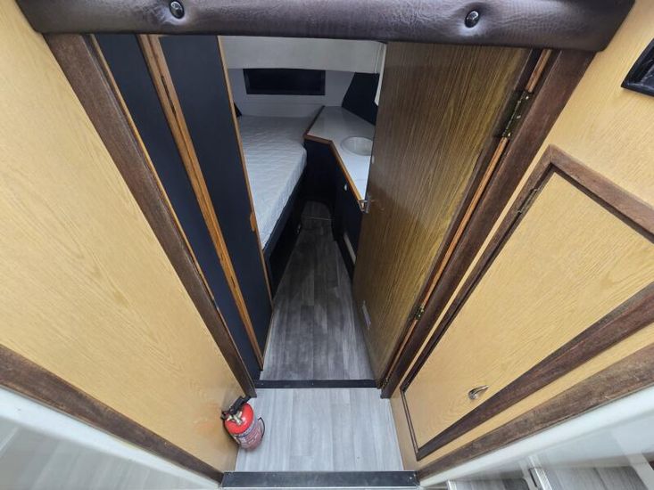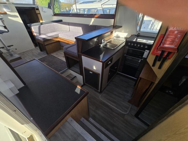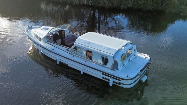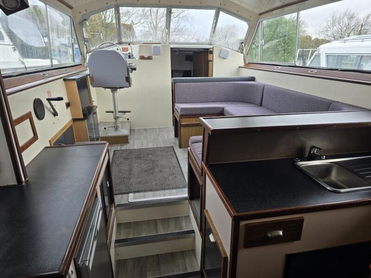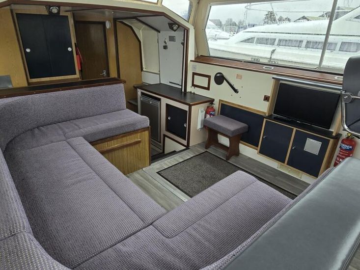 Connoisseur 1135 - 1986 - Powered by a BMC 2.5 diesel engine on a hydraulic drive. 6 berth accommodation in 2 cabins with 2 toilets and showers. Specification to include; Bowthruster, battery charger, shore power, inverter, warm air heating, immersion heater, folding windscreens and more. A well equipped and spacious family cruiser - ideal for extended stays aboard.