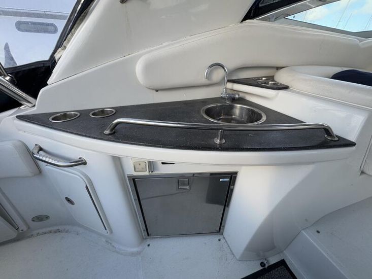 The boat is powered by Twin Cummins Mercruiser QSD 4.2l 350hp inboard diesel engines with low engine hours of approximately 545 and she provides sleeping accommodation for four comfortably below in the forward master cabin and guest double berth behind the saloon.