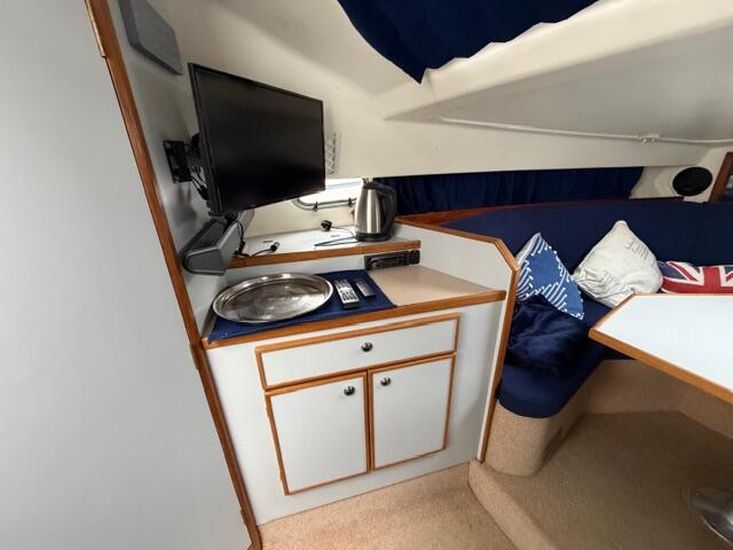Falcon 27 – 1992 – Powered by a single Ford inboard diesel engine through sterndrive. Specification includes; bowthruster, shore power, electric windlass, warm air heating, battery charger and much more. Engine serviced Nov 25. A well presented example of these popular cruisers. Viewing recommended.