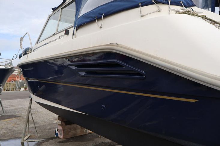 A tidy and efficient 25ft coastal cruiser powered by a Volvo Penta KAD32 diesel engine with sterndrive, offering a comfortable 22–24 knot cruising speed.