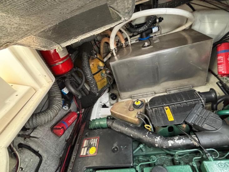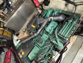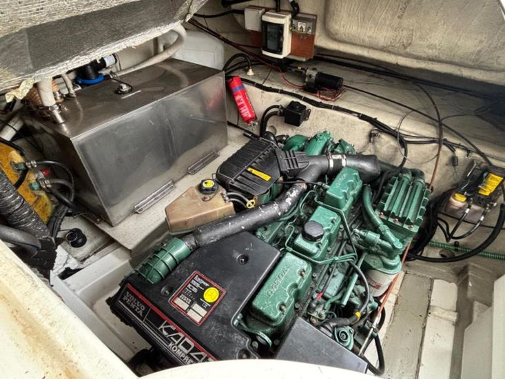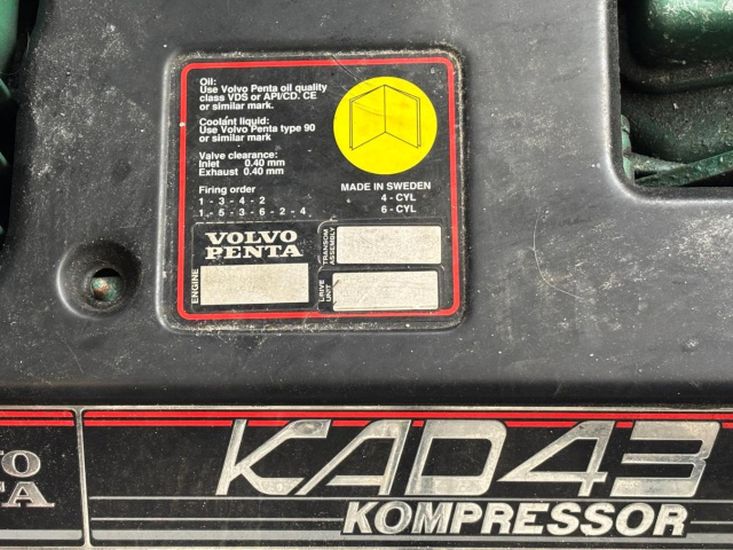Volvo Penta KAD43 approx 200hp inboard diesel engine. 1445 litre fuel tank. Trim tabs, sterndrive with power trim/tilt.
