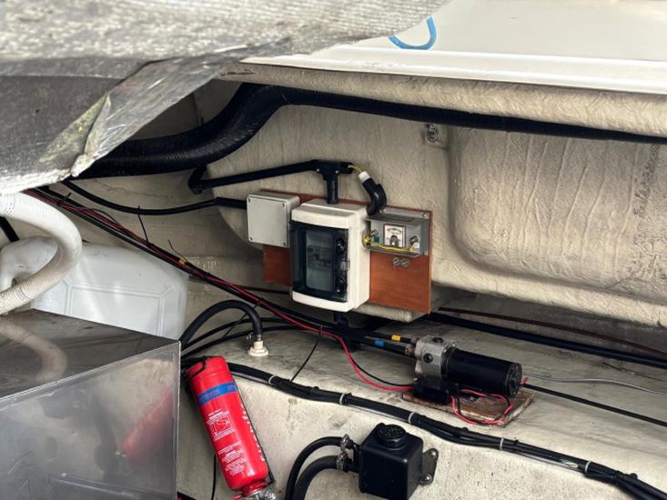 Eberspacher heating Sound system with speakers. Her galley has a gas cooker with 2 burners, oven and grill, 2 refrigerators, 727 litre water tank, pressurised hot and cold water, hot water via engine calorifier. Separate heads compartment with marine toilet and shower, plus holding tank.