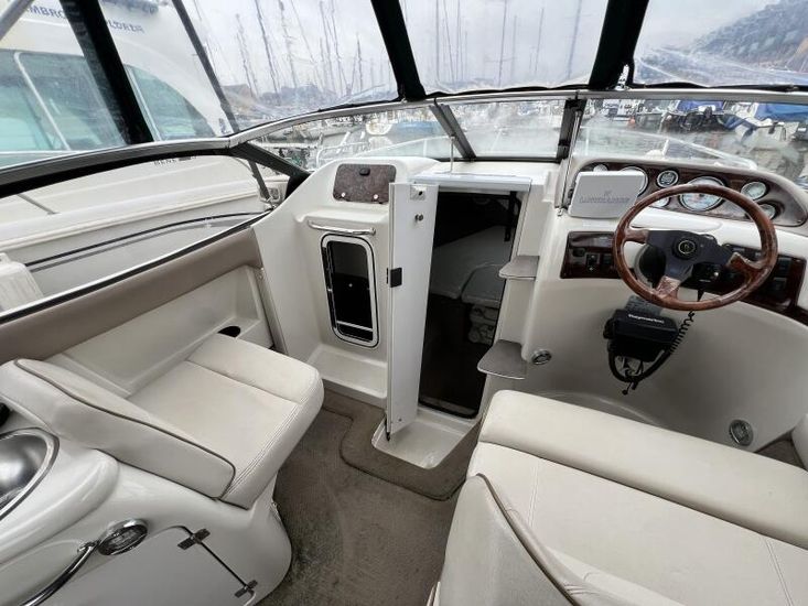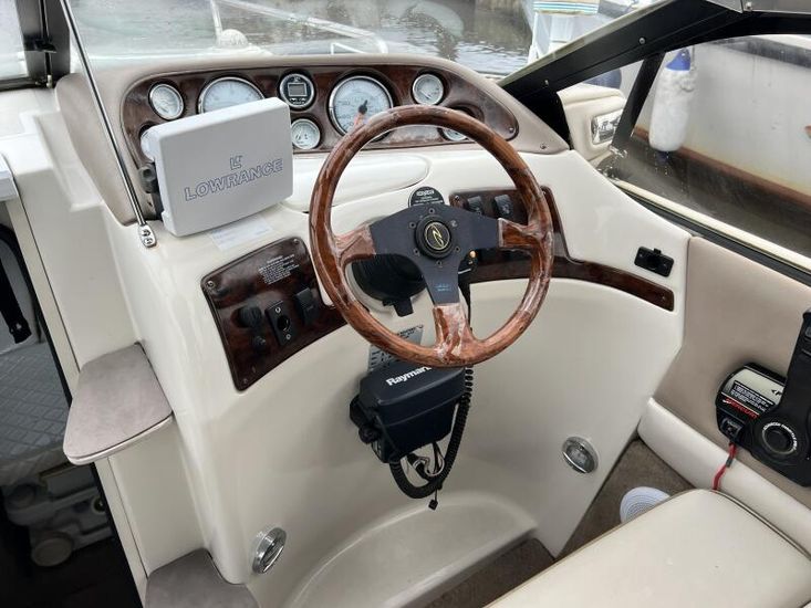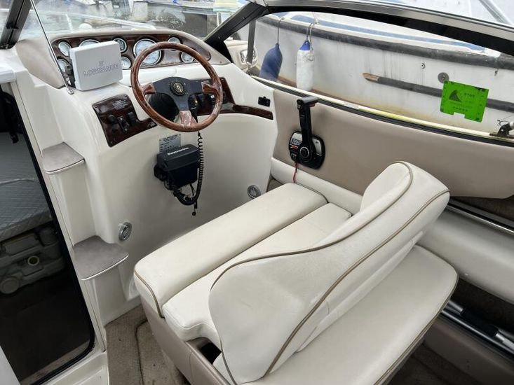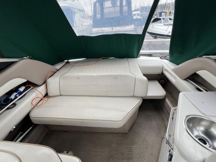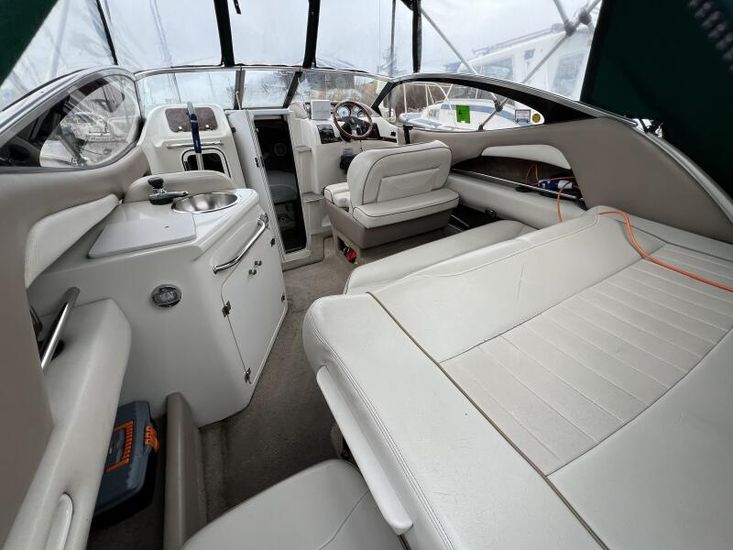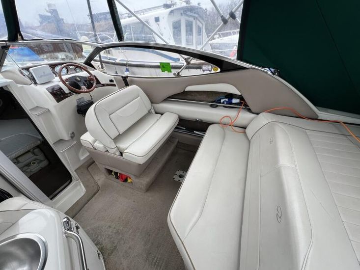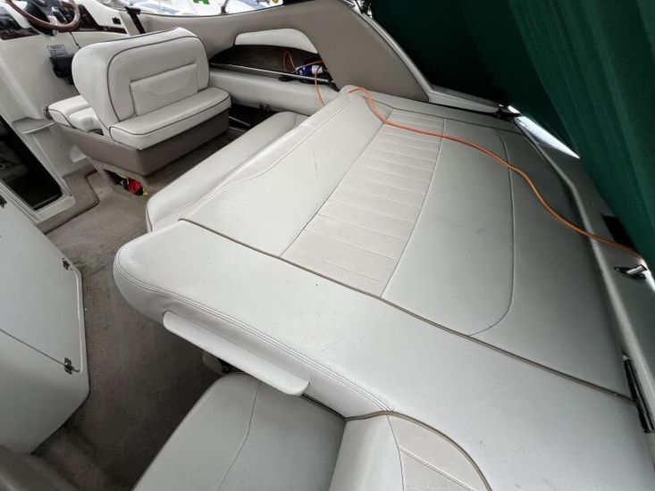 Large cockpit with ample lounge seating, galley area and forward helm seating for at least 3 persons.