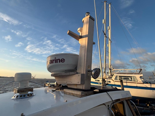 Purpose made Teak mast with radar mount