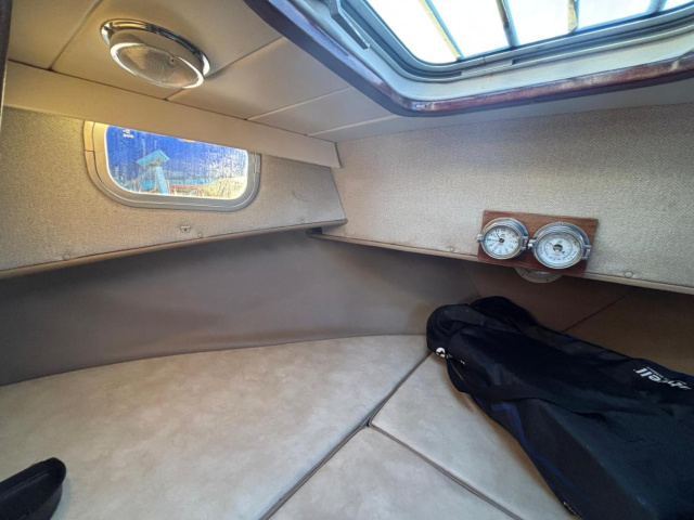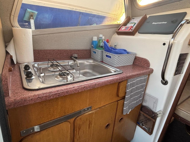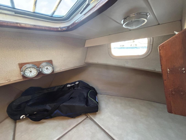 Her galley has a 2 burner gas hob, sink with pumped cold water. 2 x 12v sockets. Porta Potti chemical toilet.